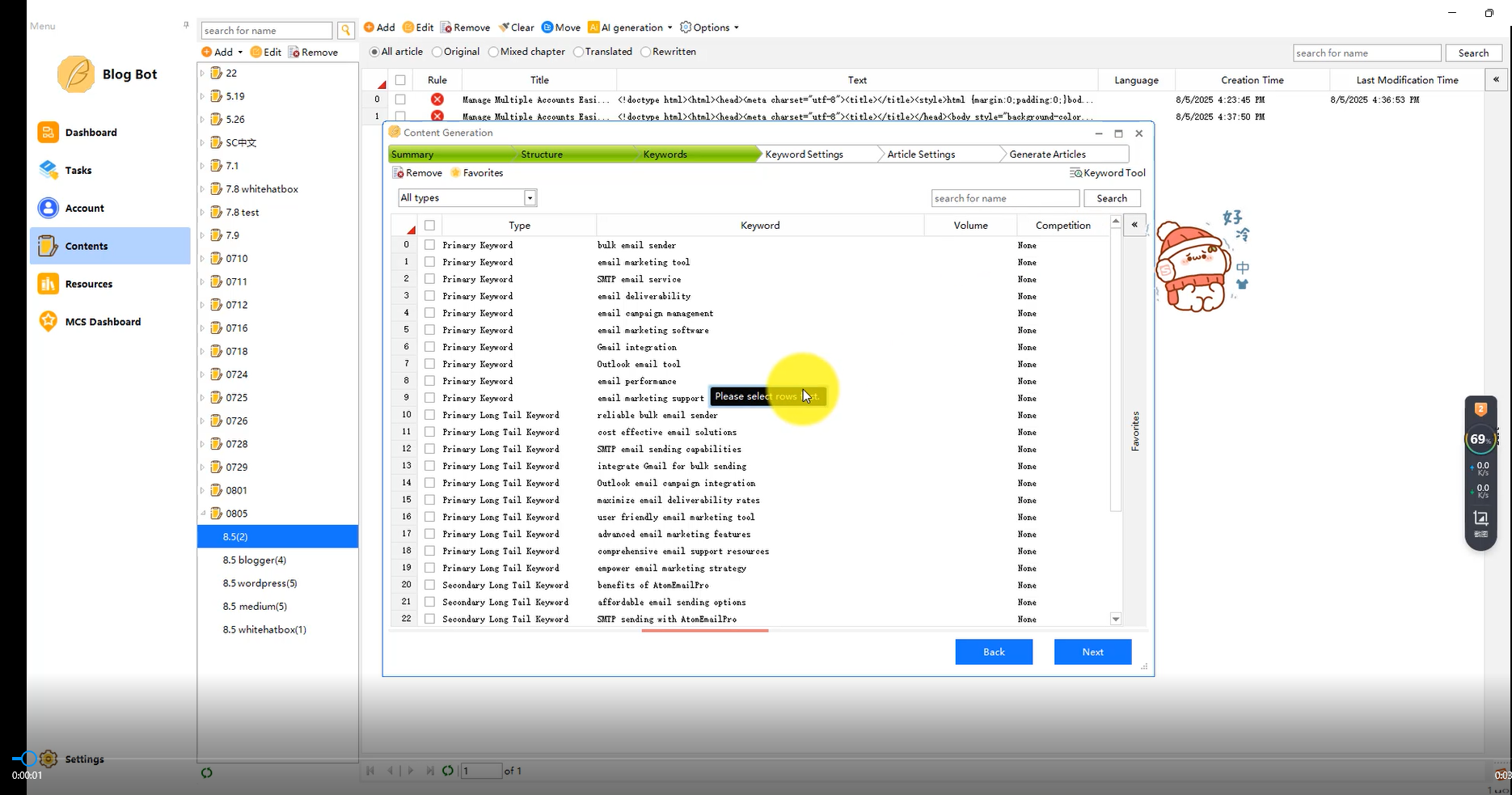 - Get Keyword List — BlogBot creates a list of important words from your outline.